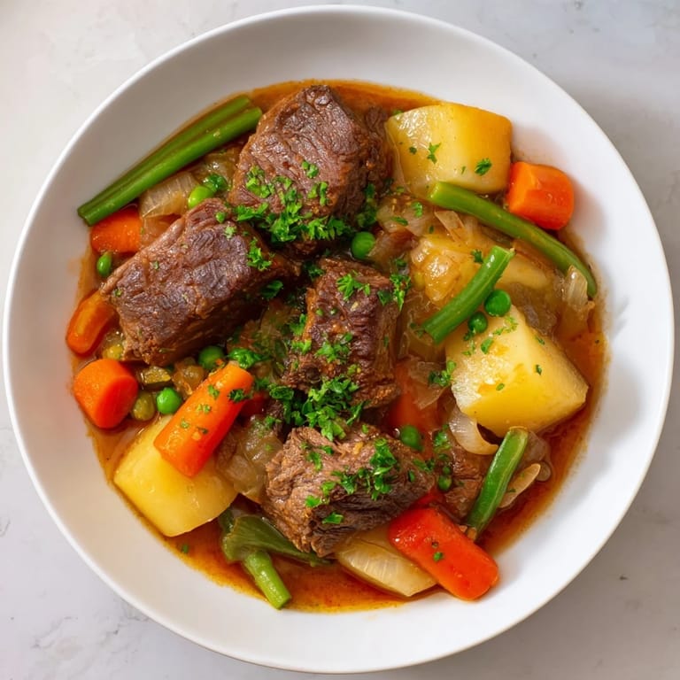 Pin It A hearty, classic stew featuring tender beef and a medley of vegetables, cooked quickly and deeply flavored thanks to the pressure cooker.