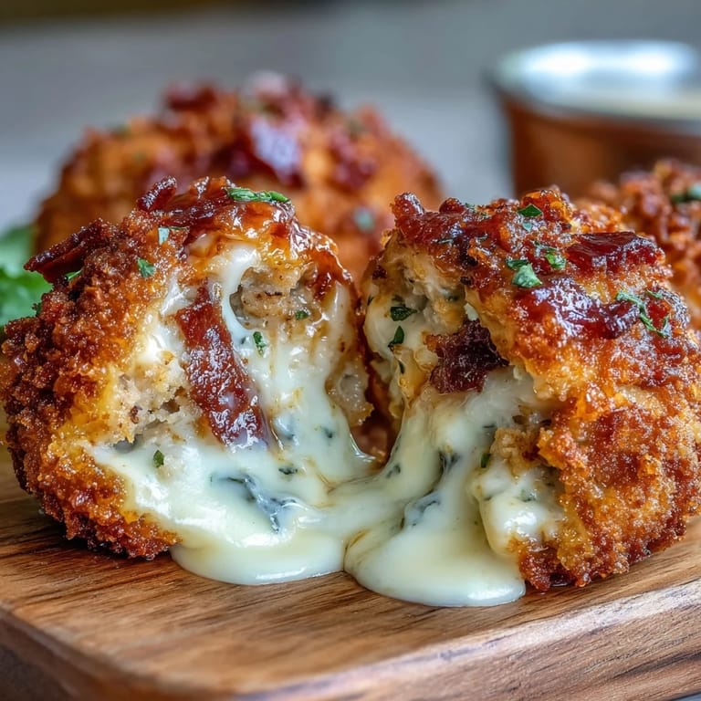 Pin It The kitchen smelled like heat and butter the night I rolled my first batch of these bombs. My hands were slick with egg wash, breadcrumbs everywhere, and I kept second-guessing whether the mozzarella would actually stay inside. When I pulled the first one from the oil and bit in, the cheese stretched like a commercial and I laughed out loud. That crispy shell cracking open to reveal smoky bacon tangled with molten mozzarella made every messy fingertip worth it.