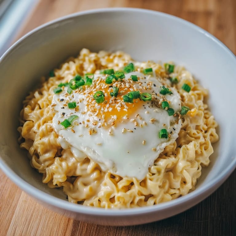 Pin It There's a moment, right after you break that egg yolk and watch it swirl into the cheesy broth, when this stops being just ramen and becomes something you actually look forward to eating. It's the kind of dish that feels indulgent but doesn't require any real skill, which is its greatest gift.