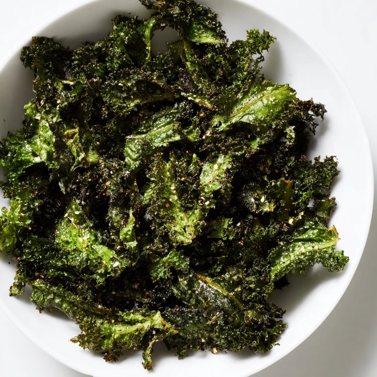 Enjoy these crispy kale chips fresh for the best texture and flavor.