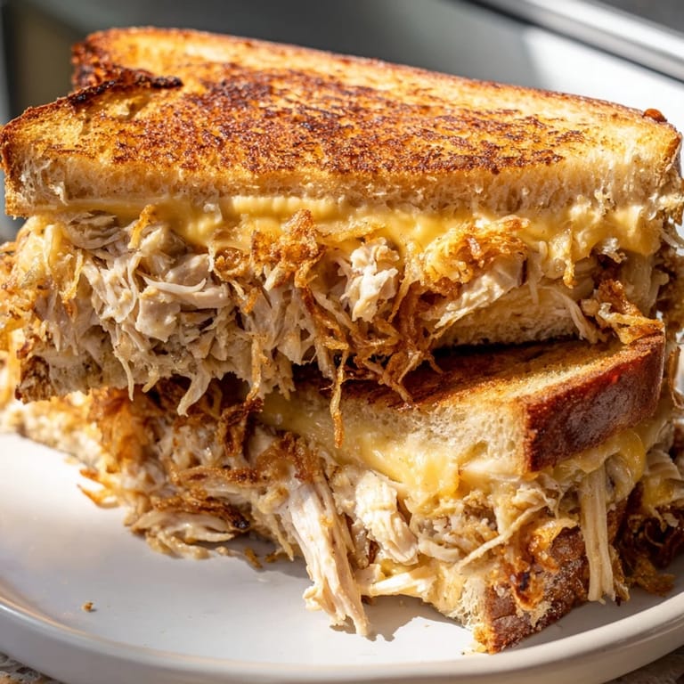 Pin It There's something magical about biting into a grilled cheese that's been waiting for you on a Tuesday afternoon—when the kitchen smells like butter and melting cheese and you realize you've somehow made something restaurant-worthy at home. This crispy shallot chicken version came about because I had leftover rotisserie chicken, a craving for something beyond the ordinary, and a jar of crispy fried shallots that kept calling to me from the pantry. The moment those shallots hit the hot cheese, everything clicked into place.