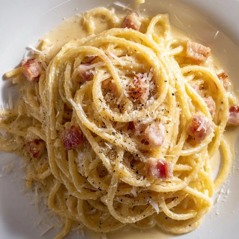 Pin It I remember standing in my kitchen in that golden light before dinner service, watching the egg mixture catch the light as it transformed into something creamy and whole, thinking about how pasta has this way of bringing people together even on the nights when nobody planned for it. That's the heart of carbonara: unfussy, honest, and deeply generous.