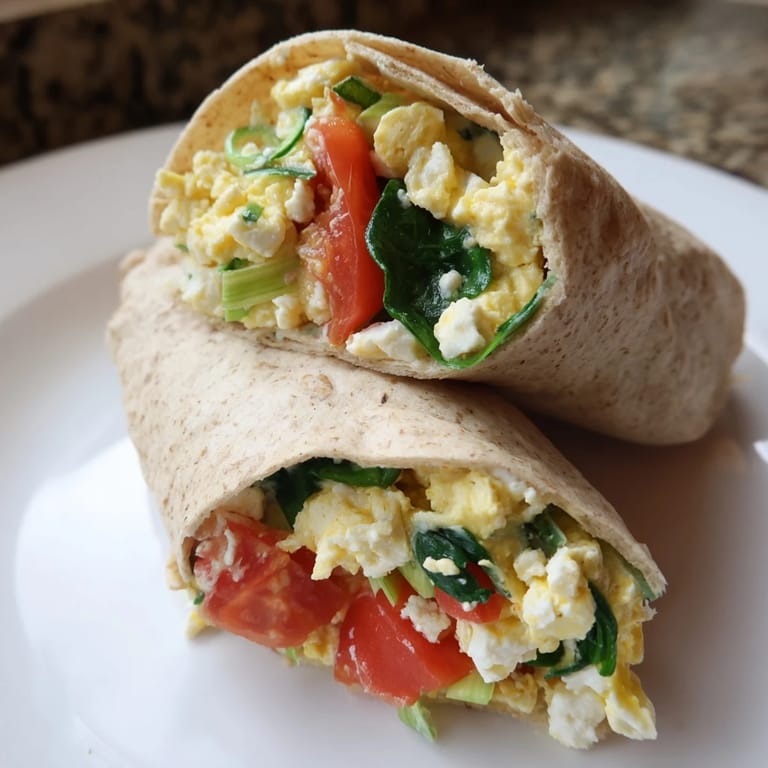 Pin It There's something about the smell of eggs hitting a hot pan that tells you breakfast is actually happening, not just something you rushed through. One morning, I was running late for work and grabbed whatever was in the fridge—eggs, some spinach that needed using, a chunk of feta—and threw it all into a tortilla out of pure necessity. Twenty minutes later, I realized I'd made something so satisfying that I stopped rushing and just sat down to eat it. That accidental wrap became my go-to now, because it turned out that scrambling eggs with creamy feta and fresh vegetables in a soft tortilla is exactly what my mornings needed.