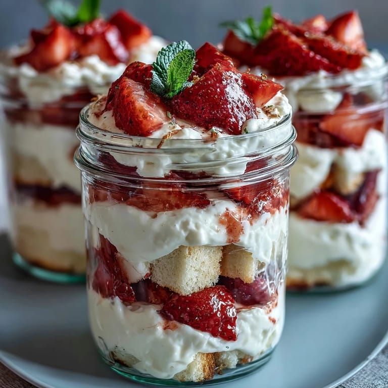 Pin It Last summer, I was juggling a picnic basket, two kids, and the persistent thought that homemade dessert didn't have to mean disaster en route to the park. That's when these mason jar parfaits saved me—a way to layer everything beautiful and portable without watching whipped cream slide off a plate into the grass. The genius isn't just in the convenience; it's in how each spoonful delivers that perfect ratio of tender shortcake, juicy strawberries, and clouds of cream, all in one delightful jar.