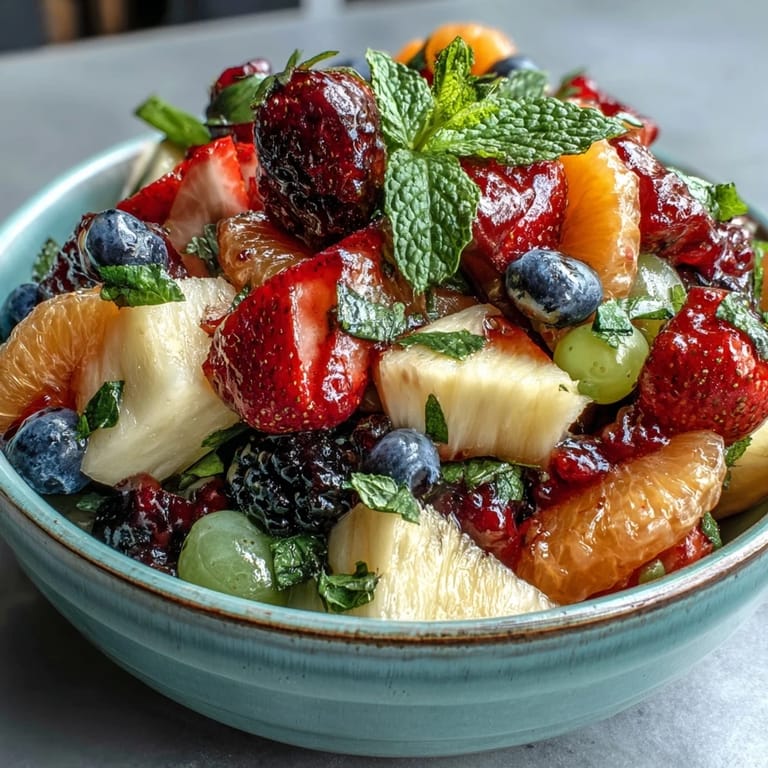 Pin It My cousin texted me three days before her graduation asking if I could bring something that didn't require heating up in someone's kitchen. She wanted the dessert table to feel special, not just a pile of grocery store cake. That afternoon, wandering through the farmers market with my basket, I realized the answer was right in front of me—jewel-toned fruit arranged like edible art, with delicate flowers tucked between the berries. The whole thing came together as this gorgeous, no-stress centerpiece that made people stop talking just to admire it.