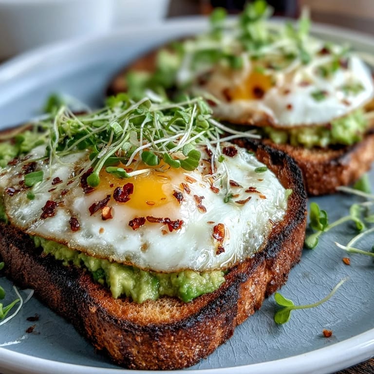 - Top generously with microgreens, sprinkle chili flakes to your heat preference, and drizzle with olive oil if you want that glossy richness. Serve immediately while the toast is still warm and the egg yolk is still perfectly soft.