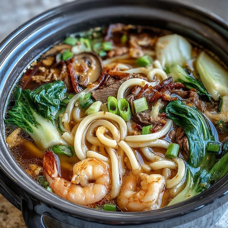Pin It Experience the joy of communal dining with these Mini Hot Pot Bowls. This interactive Asian fusion dish turns your dinner table into a creative kitchen, where every guest can customize their meal with a variety of fresh proteins, vibrant vegetables, and tender noodles, all simmering in a deeply aromatic miso broth.