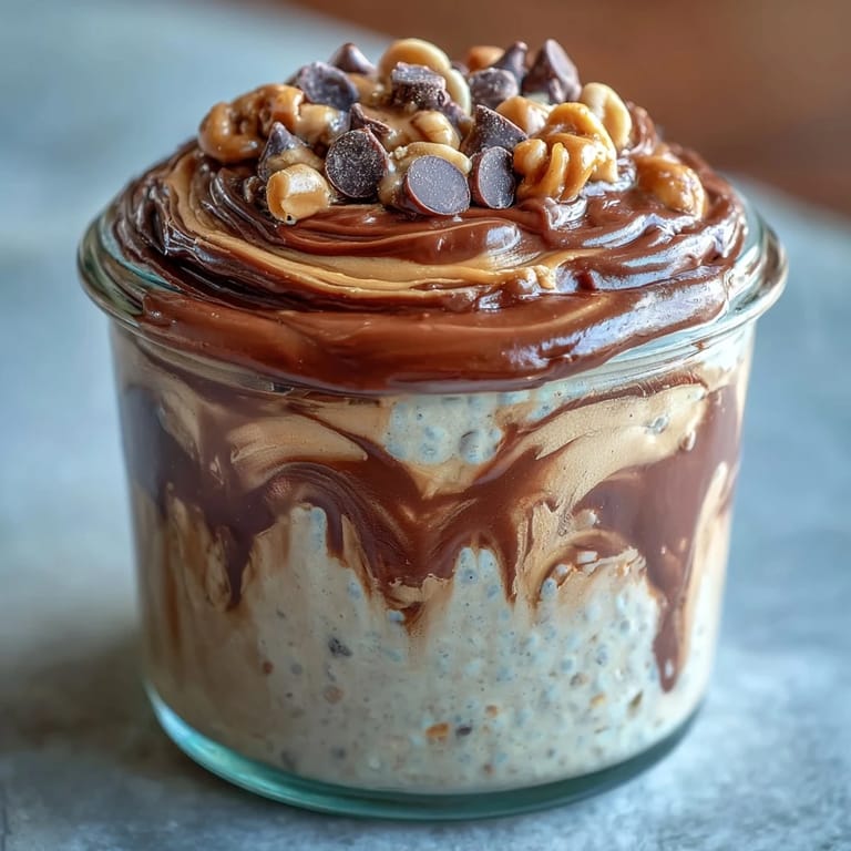 There's something deeply satisfying about layering these jars, watching the chocolate and peanut butter swirl through the oats in ways that look chaotic but feel intentional. I used to think overnight oats were boring until I started thinking of them as edible architecture, where each layer has its own flavor and texture that emerges differently depending on how you eat it—spoon straight down through the layers, or stir it all together first for a unified flavor.
