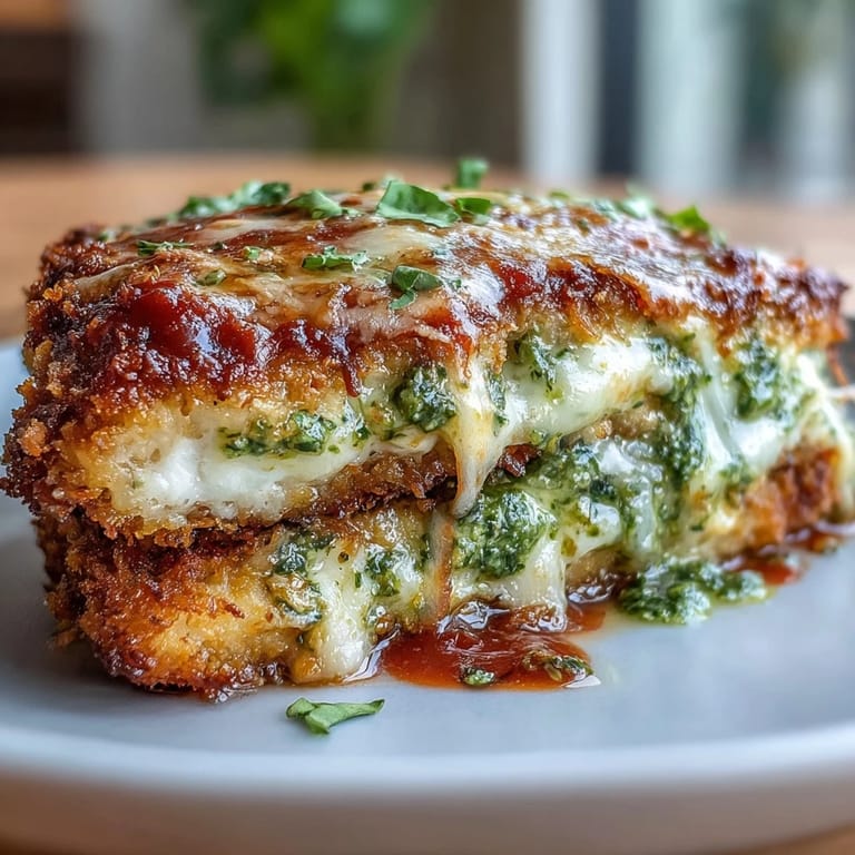 Pin It The steam from the skillet was fogging up my kitchen window when I realized I had both pesto and marinara in the fridge and no plan for dinner. I'd been making regular chicken parmesan for years, but that night I was tired of the same routine. I slathered pesto under the sauce on a whim, and when I pulled it from the oven, the smell alone made me text my neighbor to come over. That happy accident became the version I make every time now.