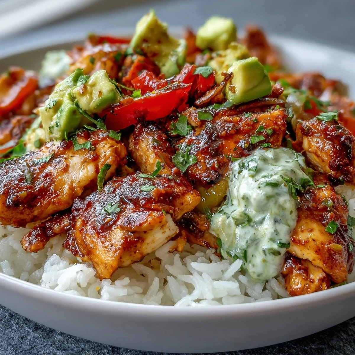 If you prefer a leaner protein, you can easily swap the chicken thighs for chicken breast. To customize the base of the bowl, try using brown rice for extra fiber or cauliflower rice for a low-carb twist.