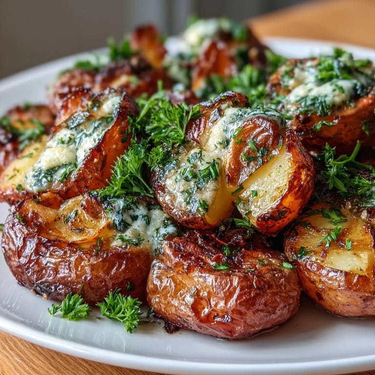 Pin It My neighbor knocked on the kitchen window one autumn evening, drawn by the smell of roasting garlic that had somehow drifted across the yard. She stood there in her gardening gloves, curious, and I realized in that moment that the aroma alone had already convinced her to stay for dinner. These smashed garlic and herb potatoes became our unspoken apology for all those times we promised to cook together but never did. That night, with golden potatoes piled high on a shared plate, we finally made good on it.