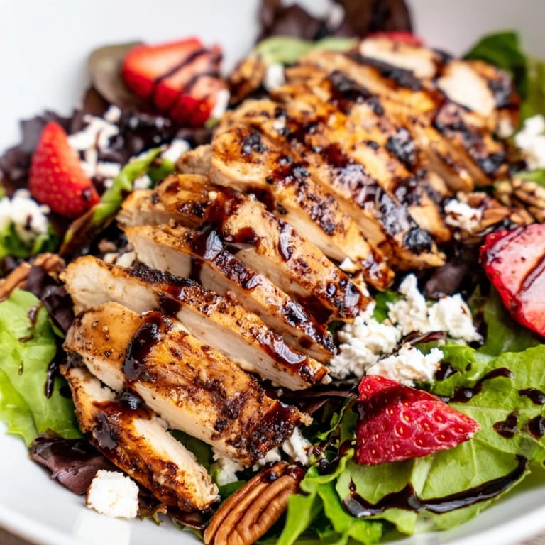 Simply omit the chicken and increase protein with toasted nuts, seeds, or chickpeas. The balsamic glaze and fresh ingredients still create a satisfying, flavorful main course.