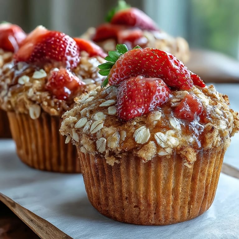 Pin It There's something about the smell of strawberries baking that makes everything feel like a lazy Sunday morning, even when it's a Tuesday and the house is chaos. I stumbled onto these muffins during one of those mornings when I had Greek yogurt sitting in the fridge and fresh strawberries from the farmers market, and I thought, why not make them count? The first batch came out denser than I expected, but by the third attempt, I figured out the magic—don't overmix, let the oats do their thing, and trust that the yogurt keeps everything tender without tasting sour. Now these are the first thing people ask me to bring to potlucks, and honestly, I've stopped pretending they take effort.