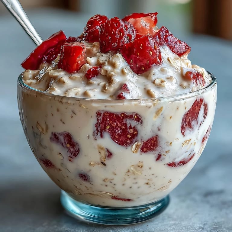 Pin It The magic of overnight oats lies in their simplicity. As the oats and chia seeds soak in milk and yogurt, they soften and expand, creating a pudding-like consistency that's both comforting and filling. The vanilla protein powder adds body and a subtle sweetness, while the strawberries provide bursts of fresh flavor in every spoonful. This isn't just a breakfast—it's a ritual of self-care, a moment of indulgence that happens to be incredibly good for you.