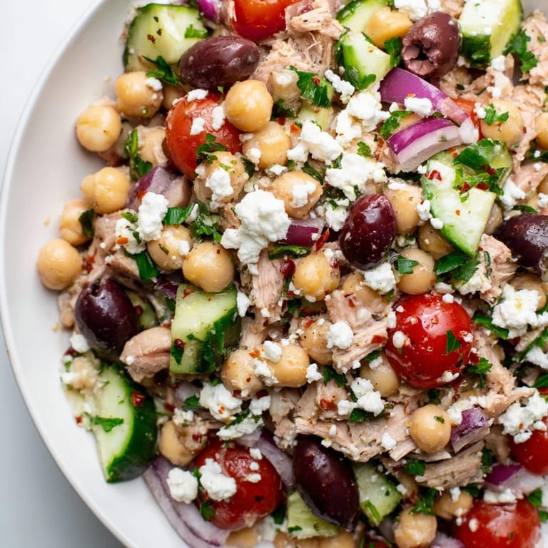 I've thrown in diced bell pepper for extra crunch, swapped the feta for creamy goat cheese, and even served it on a bed of arugula when I wanted more greens. The core of this recipe—the tuna, chickpeas, and lemon dressing—is so solid that it handles improvisation really well. You can also wrap it in a pita or use it to fill lettuce cups if you want something handheld.