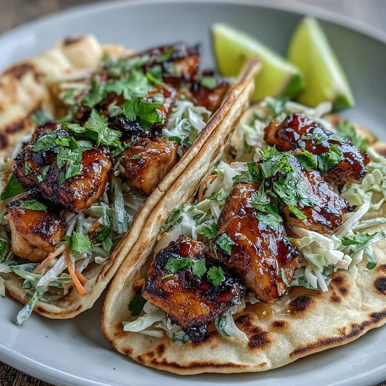 I made these for a dinner party where someone mentioned they were tired of the same taco nights, and watching everyone's faces light up when they took that first bite—when the sweetness and garlic hit at the same moment the crisp slaw added texture—that's when I realized this wasn't just my weird kitchen experiment anymore. It became the thing people asked me to make again.